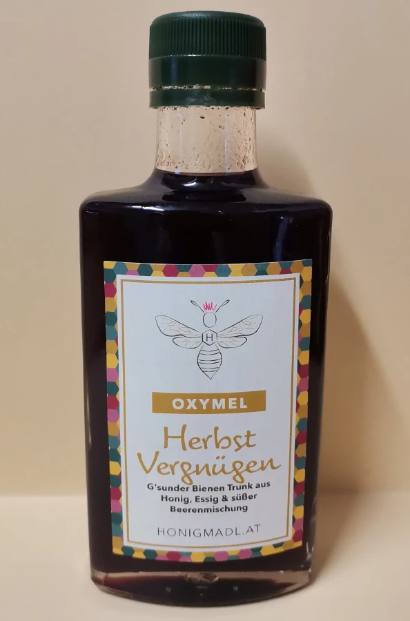 Oxymel ist eine traditionsreiche Mischung aus Honig und Essig, die bereits in der Antike als Heil- und Stärkungsmittel bekannt war. Es kombiniert die natürlichen Vorteile von Honig und Essig mit verschiedenen Zutaten, die unterschiedliche Wirkungen auf den Körper haben."Herbst Vergnügen" kombiniert die Aromen von Holunder-, Brombeer-, Ribisel-, Moosbeer- und Himbeerextrakten, die eine fruchtige, leicht säuerliche Frische verleihen und gleichzeitig wohltuend für das Immunsystem wirken.<br><br>Dieses Oxymel kann pur genossen, mit Wasser oder Saft verdünnt oder als besondere Zutat in der Herbstküche verwendet werden.