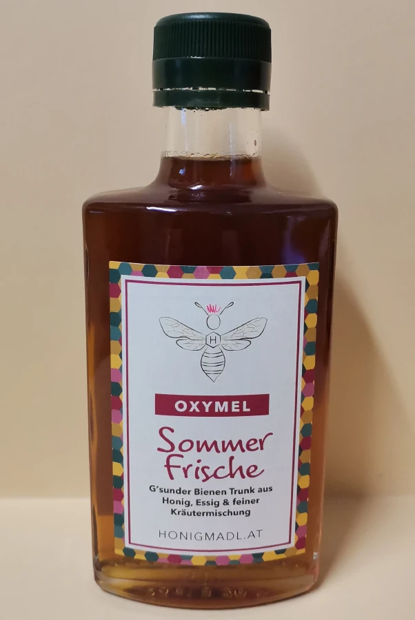 Oxymel ist eine traditionsreiche Mischung aus Honig und Essig, die bereits in der Antike als Heil- und Stärkungsmittel bekannt war. Es kombiniert die natürlichen Vorteile von Honig und Essig mit verschiedenen Zutaten, die unterschiedliche Wirkungen auf den Körper haben. In der Variante "Sommer Frische" vereinen sich die Kräuter Holler, Brennnessel, Thymian, Salbei, Malven und Ringelblumen, um eine erfrischende und kräftigende Wirkung zu erzielen.<br><br>Wie alle Oxymel-Sorten kann auch diese Mischung pur, als isotonisches Getränk oder als Zutat in Salaten verwendet werden – besonders im Sommer ein Genuss.
